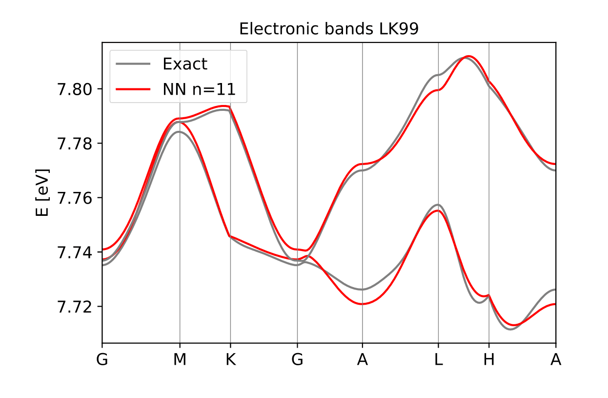Figure 4: Band Structure obtained from Magritte for LK99, nearest neighbour (NN) for periodic motif.
