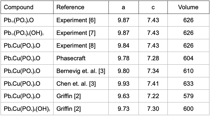 [2] Chen et. al. First-principles study on the electronic structure of Pb10−xCux(PO4)6O (x = 0, 1), https://doi.org/10.48550/arXiv.2307.16040