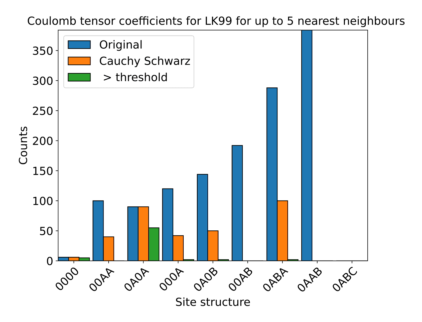 We can then proceed to calculate the coulomb integrals from the hopping terms of our tight binding Hamiltonian. Through consideration of the size of hopping term, we are able to discard (set to zero) certain terms, to help reduce the problem, whilst maintaining numerical precision.